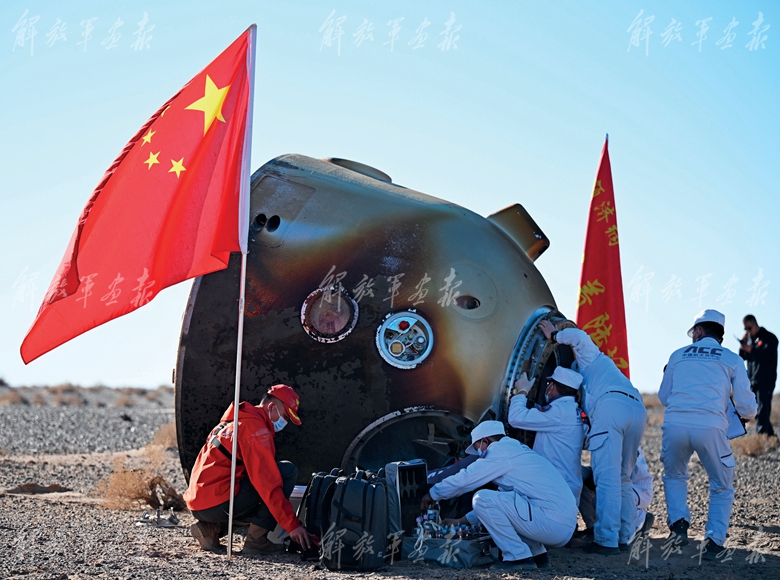 4月30日,神舟十七號(hào)載人飛船返回艙成功著陸,現(xiàn)場(chǎng)醫(yī)監(jiān)醫(yī)保人員確認(rèn)航天員湯洪波、唐勝杰、江新林身體狀態(tài)良好。(攝影/新華社記者 連 振)
