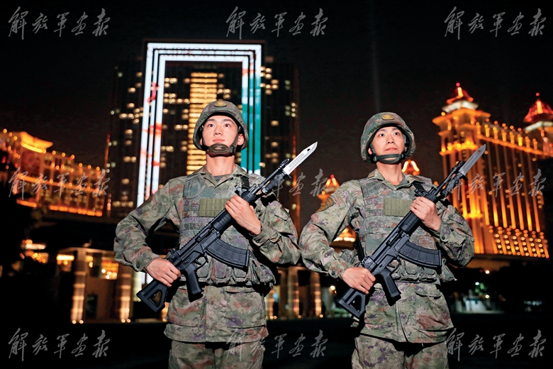 今年是中國(guó)人民解放軍進(jìn)駐澳門(mén)25周年。25年來(lái),駐澳門(mén)部隊(duì)官兵堅(jiān)決貫徹“一國(guó)兩制”方針,認(rèn)真落實(shí)基本法和駐軍法,忠實(shí)履行防務(wù)職責(zé),為維護(hù)澳門(mén)繁榮穩(wěn)定發(fā)揮重要作用,充分展示威武之師、文明之師良好形象。圖為駐澳門(mén)部隊(duì)?wèi)?zhàn)士堅(jiān)守崗位、不辱使命。(攝影/陳 帥)