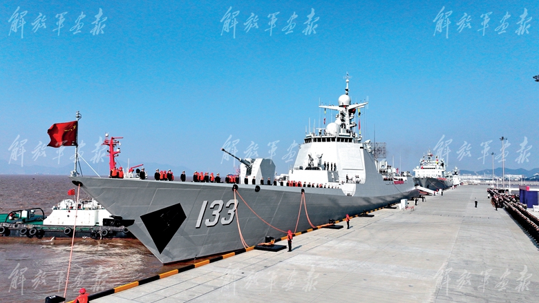 1月初,南部戰(zhàn)區(qū)海軍某驅(qū)逐艦支隊(duì)艦艇編隊(duì)開(kāi)展實(shí)戰(zhàn)化訓(xùn)練。(攝影/溫 彬)