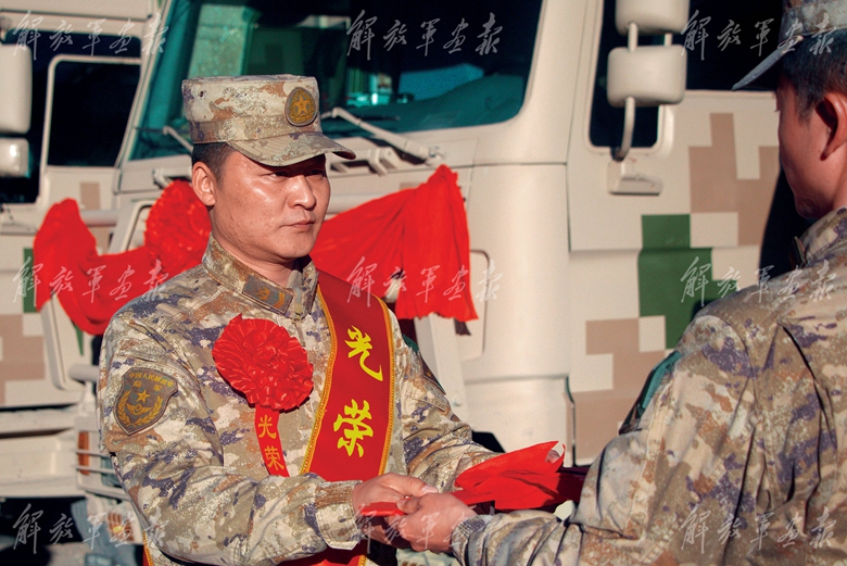 接過王育手中的軍車鑰匙,下士何文彬堅定地說:“請班長放心,我們一定把車保養(yǎng)好,把任務完成好。”那一刻,與戰(zhàn)友一起征戰(zhàn)天路的歲月,如電影般在王育腦海中回放。翻越風雪達坂,闖過懸崖峭壁……汽車駛過的每一道彎、每一條溝,都深深印刻在他的記憶中。