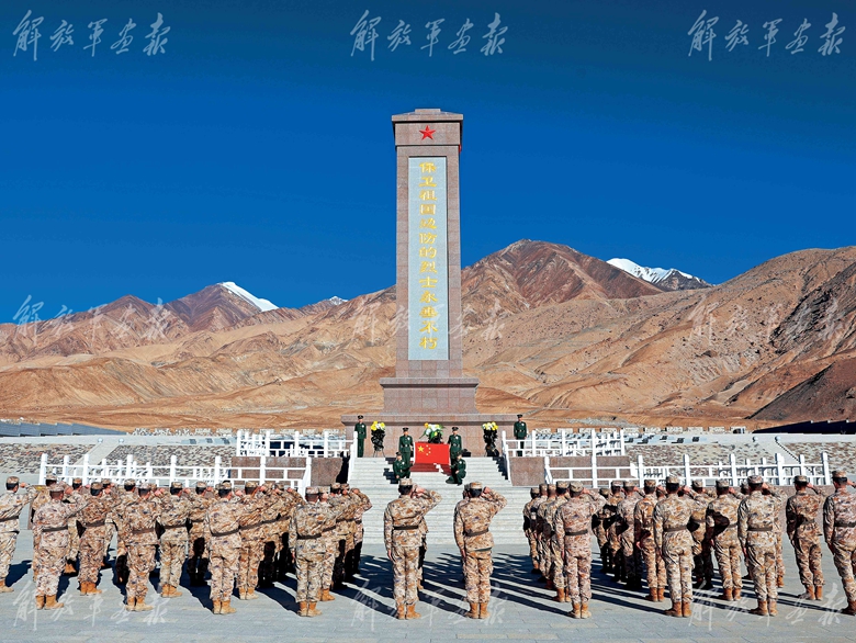 從高原駐地來到康西瓦烈士陵園,該營官兵莊嚴肅立。
