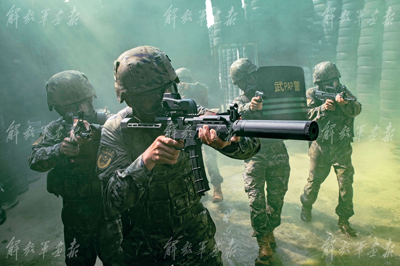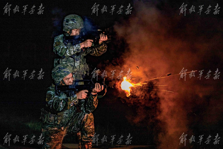 官兵對(duì)目標(biāo)進(jìn)行火力打擊。