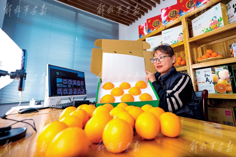 帶著欣喜之情,記者走進村里由陸軍第73集團軍幫建的電商直播基地,感到眼前一亮?!拔覀兇宓摹t美人’柑橘就是‘幸福果’,品相好,汁多味甜……”返鄉(xiāng)創(chuàng)業(yè)青年陳上友正在進行直播帶貨,聲情并茂地推銷柑橘。直播結(jié)束后,他告訴記者,看著村民們的錢袋子越來越鼓、生活越來越富足,自己更堅定了扎根家鄉(xiāng)、建功鄉(xiāng)村振興的決心與信心。