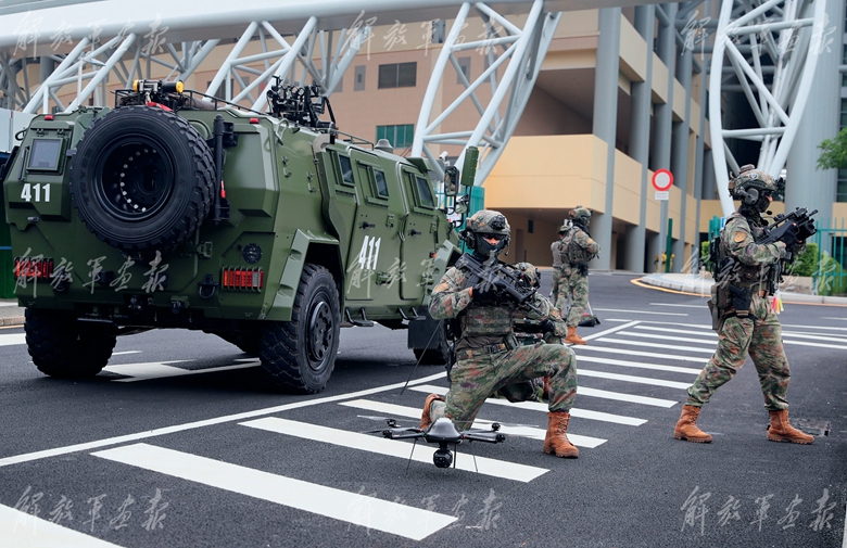 澳門(mén)街區(qū),“靈犬”演練,與澳門(mén)保安系統(tǒng)聯(lián)合反恐;馬來(lái)半島,叢林突擊,走出國(guó)門(mén)與外軍聯(lián)合軍演;南國(guó)邊陲,聯(lián)合演習(xí),與老撾人民軍組織邊境反恐;從2020年開(kāi)始,駐軍年年組織海訓(xùn);隨著無(wú)人化、智能化裝備列裝,駐軍軍事訓(xùn)練加速實(shí)現(xiàn)向“智”轉(zhuǎn)型、以“智”練兵……