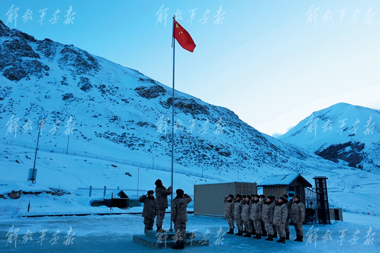 清晨,官兵在某執(zhí)勤點位升起國旗。
