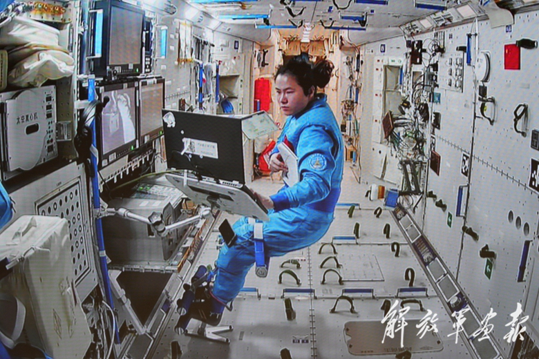 1月20日在北京航天飛行控制中心拍攝的神舟十九號(hào)航天員王浩澤在空間站組合體艙內(nèi)協(xié)同工作的畫(huà)面。(攝影/新華社記者 劉 芳)