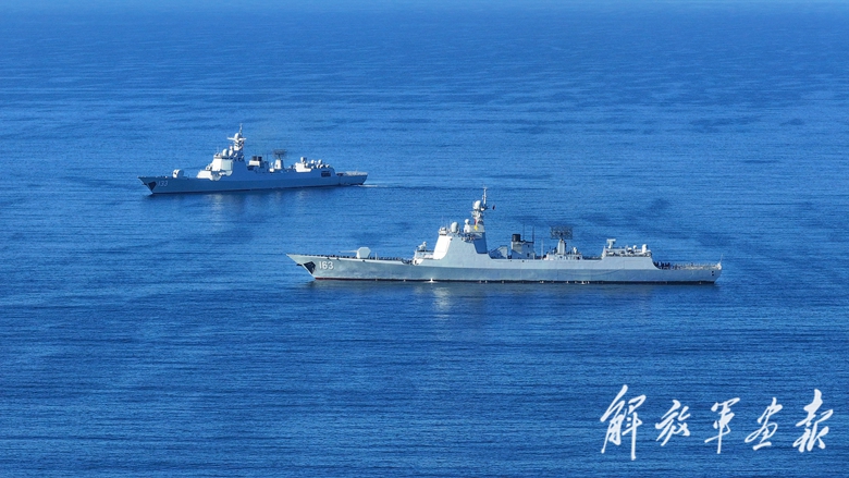 當(dāng)?shù)貢r(shí)間2025年1月1日上午,中國海軍第46、47批護(hù)航編隊(duì)于亞丁灣會合。(攝影/張大禹)