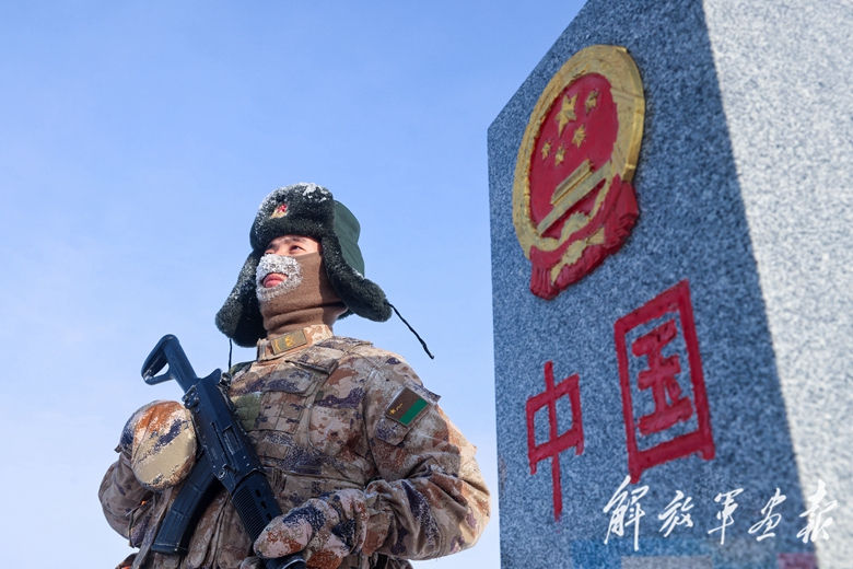 春節(jié)期間,北部戰(zhàn)區(qū)某邊防連戰(zhàn)士在寒風(fēng)中堅(jiān)守戰(zhàn)位。(攝影/陶成烽)