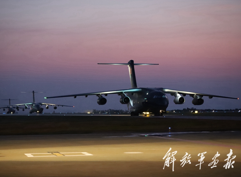 滑行、加速……夜色中,伴隨著聲聲“咆哮”,運(yùn)-20騰空而起。