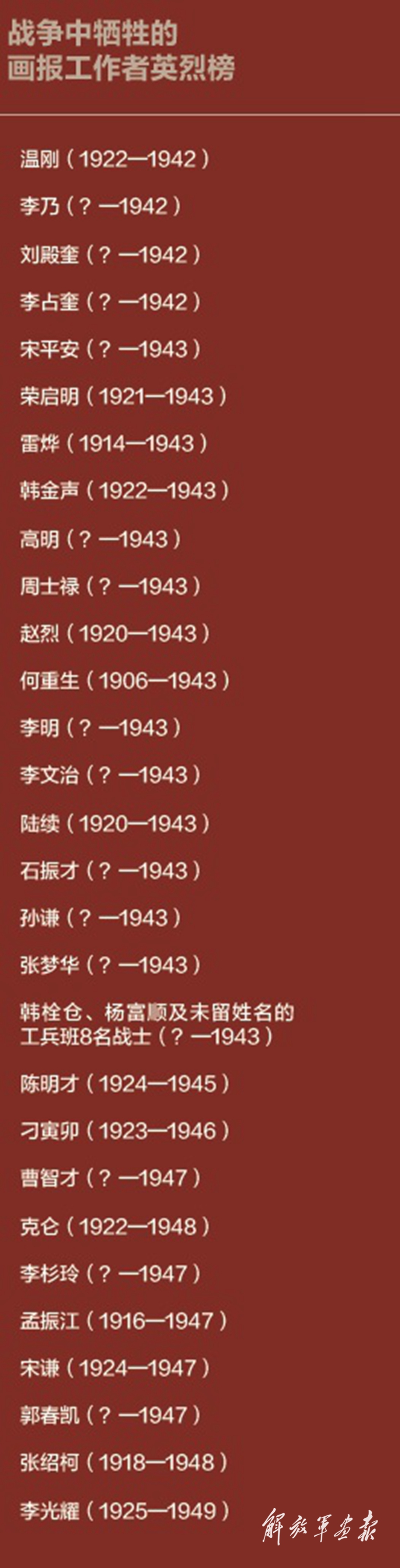 戰(zhàn)爭中犧牲的畫報工作者英烈榜。