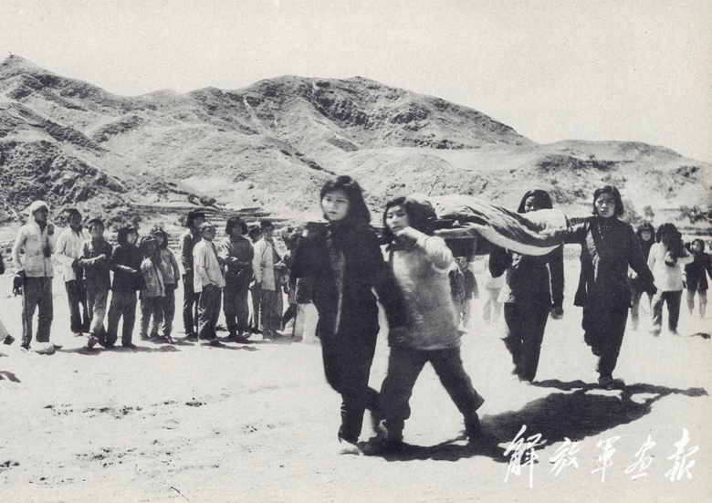 1941年元旦,八路軍攻克河北省阜平縣城后,戰(zhàn)士們從破毀的工事中抬回戰(zhàn)利品。(攝影/趙 烈)