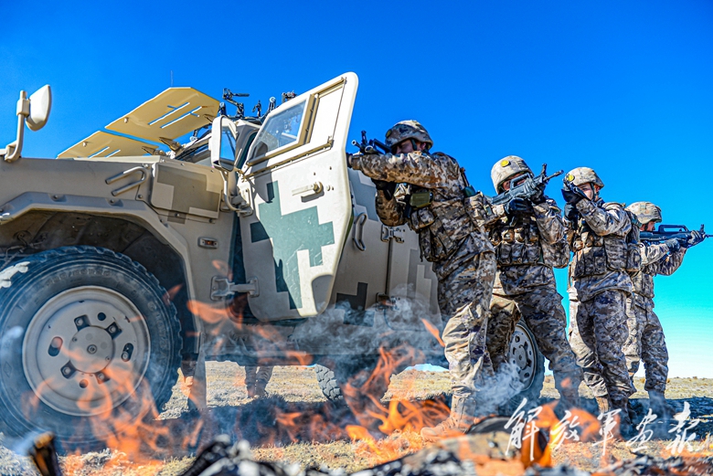 休息時,官兵放聲歌唱《我為祖國守邊關》。