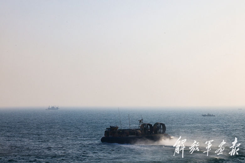 參演部隊(duì)進(jìn)行氣墊船登陸課目訓(xùn)練。