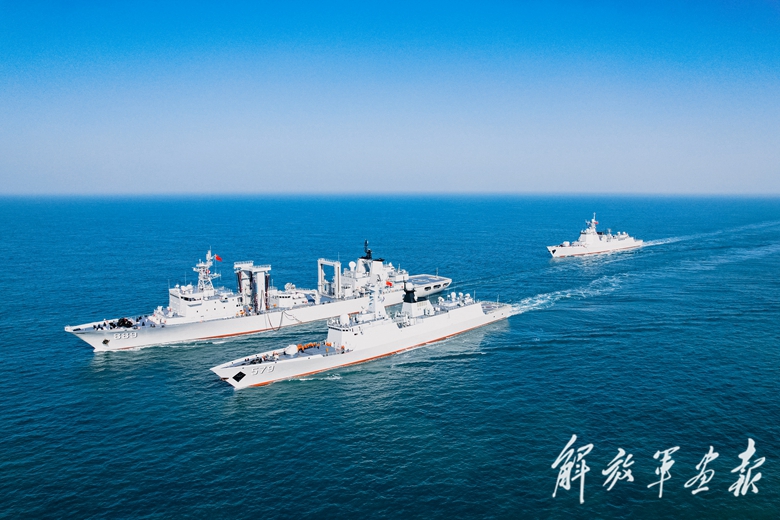 波光粼粼的海面上,海軍某驅(qū)逐艦支隊(duì)邯鄲艦快速向任務(wù)海域航渡。
