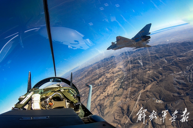 “計(jì)時(shí)起飛!”戰(zhàn)機(jī)呼嘯升空。抵達(dá)預(yù)定空域后,戰(zhàn)機(jī)完成戰(zhàn)斗編組,快速隱蔽接近目標(biāo)。突然間,機(jī)艙內(nèi)發(fā)出告警聲。為擺脫“敵”防空系統(tǒng)搜索追蹤,長(zhǎng)機(jī)指揮僚機(jī)不斷變換隊(duì)形,改變飛行姿態(tài),實(shí)施交叉機(jī)動(dòng)。隨后,飛行員們相互配合,利用山谷地形掩護(hù),實(shí)施低空隱蔽突防。