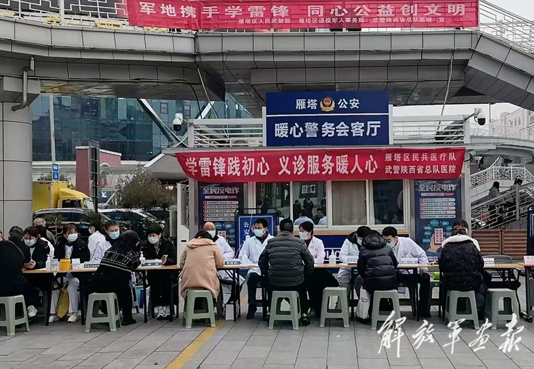 3月4日,西安市雁塔區(qū)人武部和武警陜西總隊醫(yī)院聯(lián)合開展學(xué)雷鋒義診活動。(攝影/趙宣偉)
