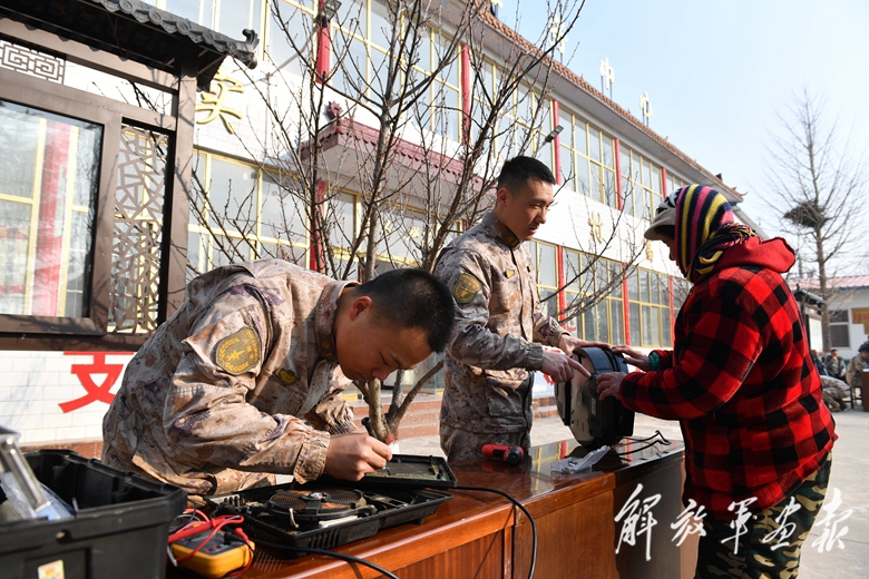 3月1日,火箭軍某旅開展“雷鋒精神代代傳”活動,官兵們走出營門為民服務(wù)。圖為官兵幫助村民維修電器。(攝影/陳世鋒)