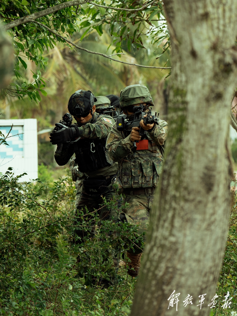 中泰雙方參訓(xùn)隊(duì)員開展反恐反海盜課目訓(xùn)練。(攝影/馬梓博)
