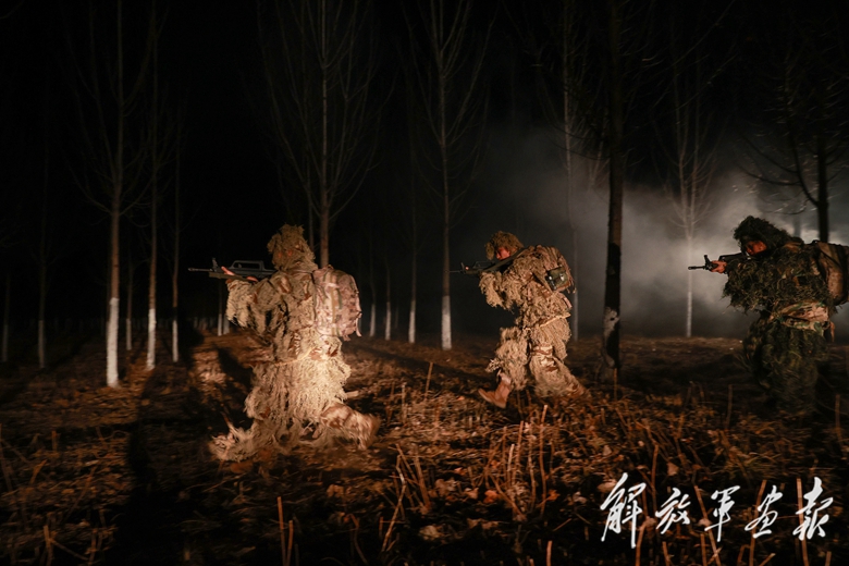 夜暗條件下,戰(zhàn)士借助微光展開操作。