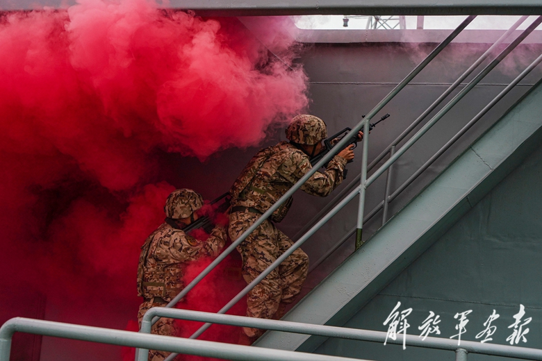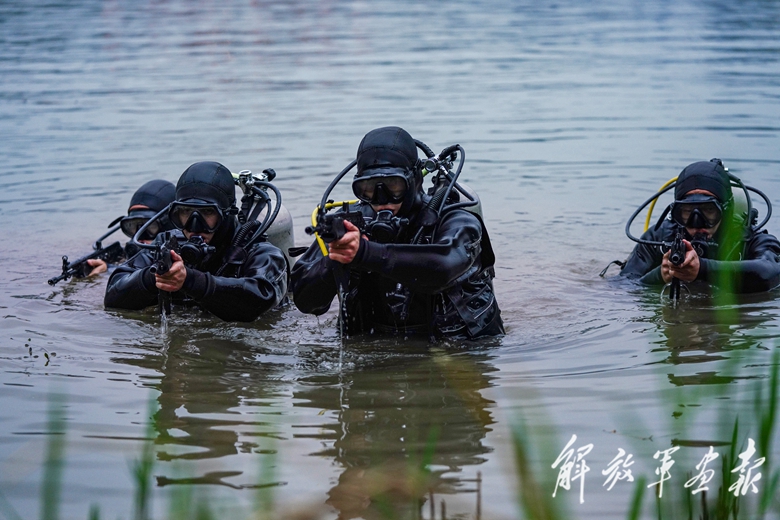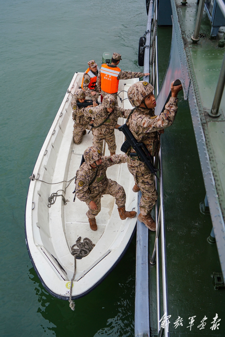 空中,無人機抵近偵察;陸上,機動分隊沿岸布控;水下,潛水員隱蔽滲透;水上,突擊組快速進入“被劫”游船……訓練中,各作戰(zhàn)單元密切協(xié)同,成功解救“人質(zhì)”。