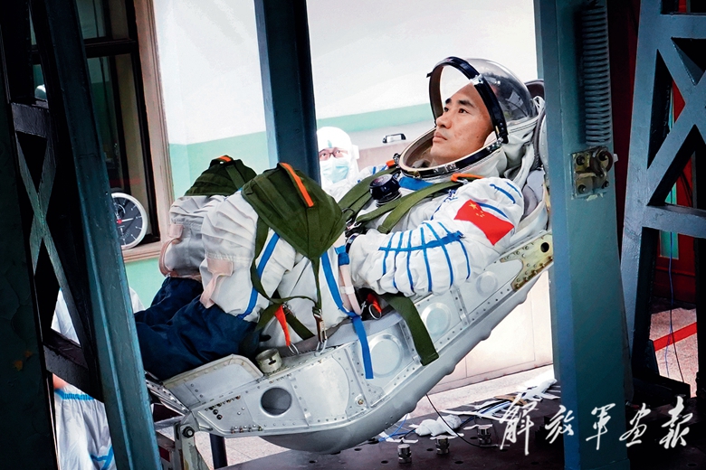 神舟二十號航天員陳中瑞進行著陸沖擊體驗訓(xùn)練。(攝影/王夏陽)