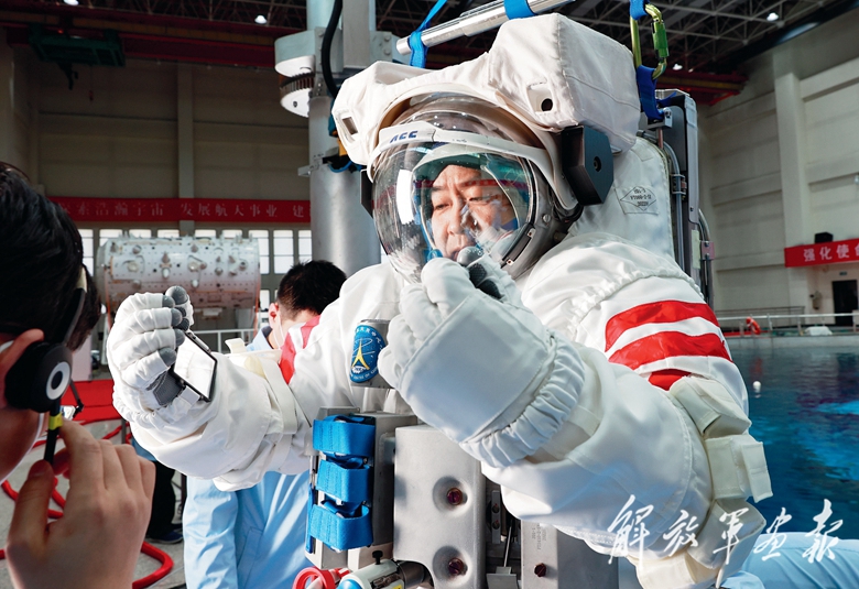 神舟二十號航天員陳冬穿著水下訓(xùn)練航天服。 (攝影/徐 部)