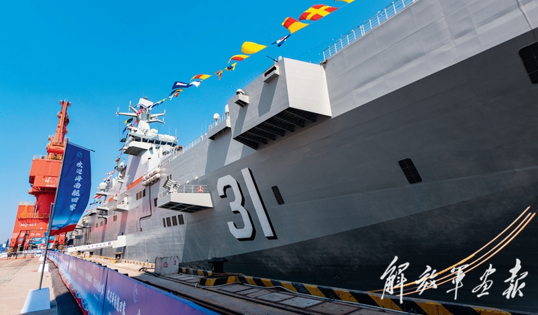 4月22日,海南省澄邁縣馬村港某碼頭,海南艦“回家”。(攝影/新華社記者 楊冠宇)