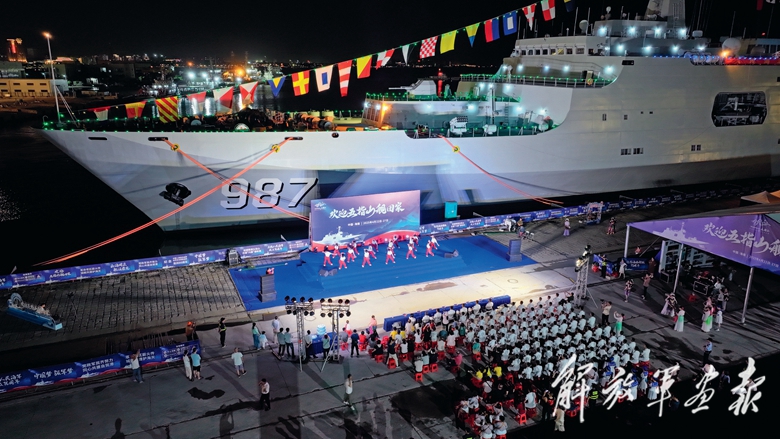 海南艦“回家”靠泊海南某碼頭,首次面向內(nèi)地公眾開放。期間進(jìn)行了開放參觀、國(guó)防教育進(jìn)校園、文化演出等系列活動(dòng),為增強(qiáng)全民國(guó)防觀念注入新動(dòng)能新力量。