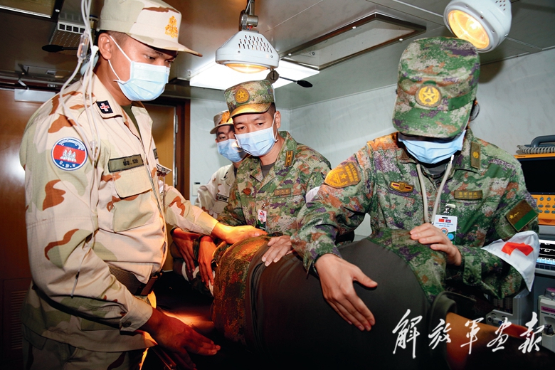 5月26日,海空方向?qū)嵄菥氈?,中柬醫(yī)療分隊協(xié)同急救“傷員”。