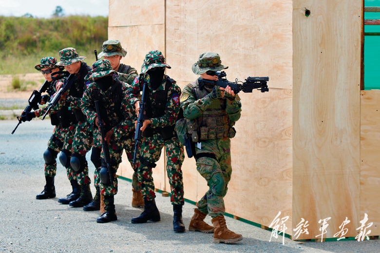 5月28日,中柬聯(lián)合任務(wù)部隊開展突擊追殲訓(xùn)練。