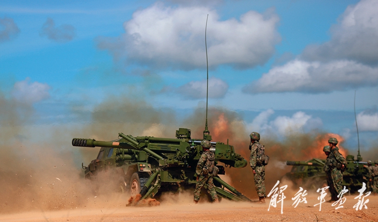 5月21日,中柬雙方官兵開展車載榴彈炮實彈射擊訓(xùn)練。