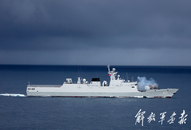 5月26日,海空方向?qū)嵄菥氃谖鞴烁鄹浇S蚺e行,參演的中國海軍攀枝花艦實施主炮實彈射擊。