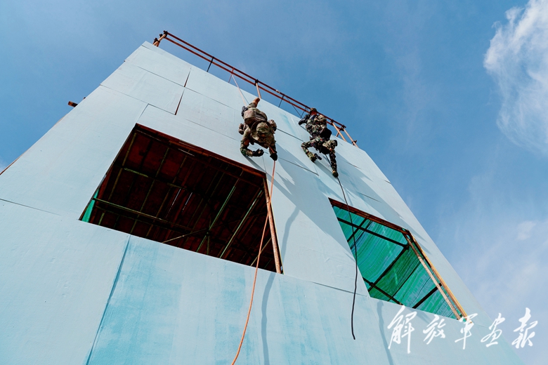 5月23日,中柬雙方突擊隊員實施索降訓(xùn)練。