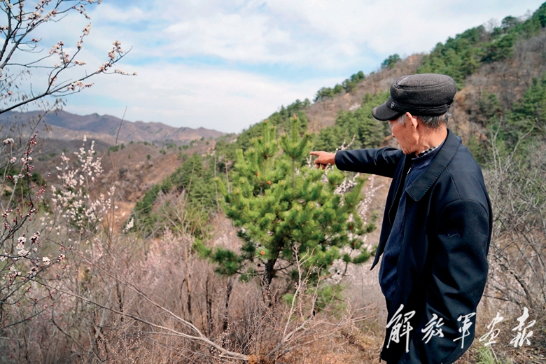 3月31日,河北省平山縣南段峪村村民、雷燁希望小學(xué)退休教師王海軍指認(rèn)雷燁烈士犧牲處。