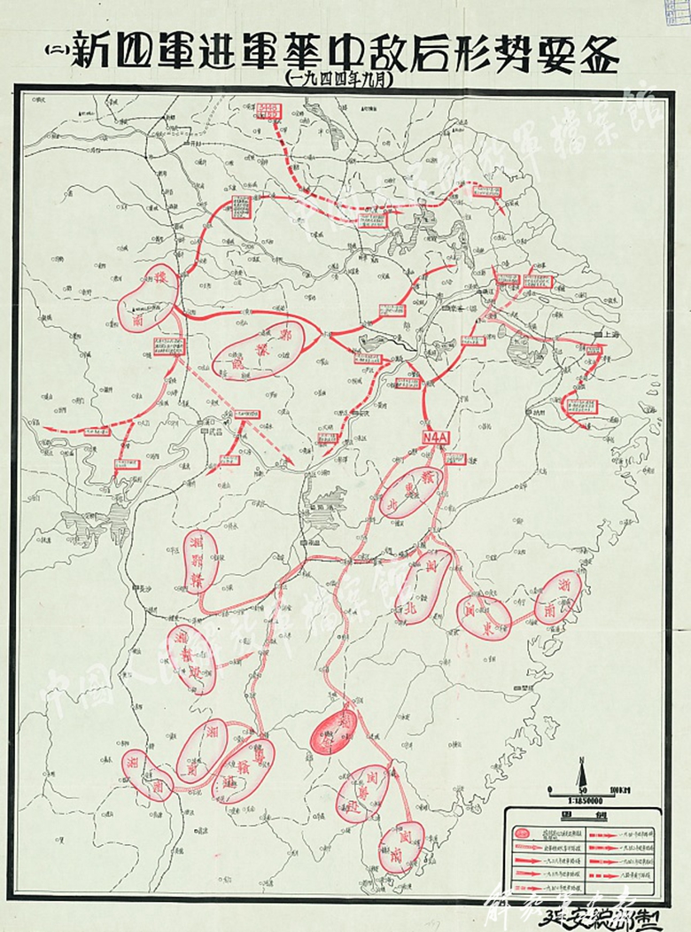《新四軍進(jìn)軍華中敵后形勢(shì)要圖》