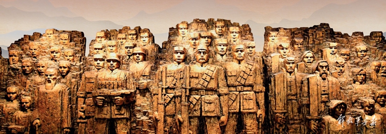 中國(guó)人民抗日戰(zhàn)爭(zhēng)紀(jì)念館序廳內(nèi)的雕塑“銅墻鐵壁”。