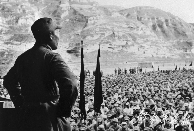 1938年5月,毛澤東同志在抗日軍政大學(xué)作“論持久戰(zhàn)”的報(bào)告。