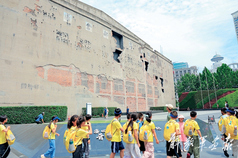 2025年6月19日,一隊(duì)學(xué)生在上海四行倉(cāng)庫(kù)抗戰(zhàn)紀(jì)念館外參觀。(攝影/陳圣琿)