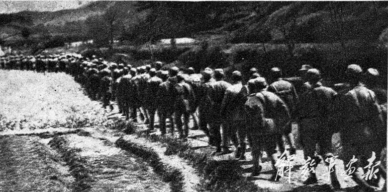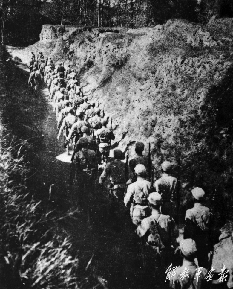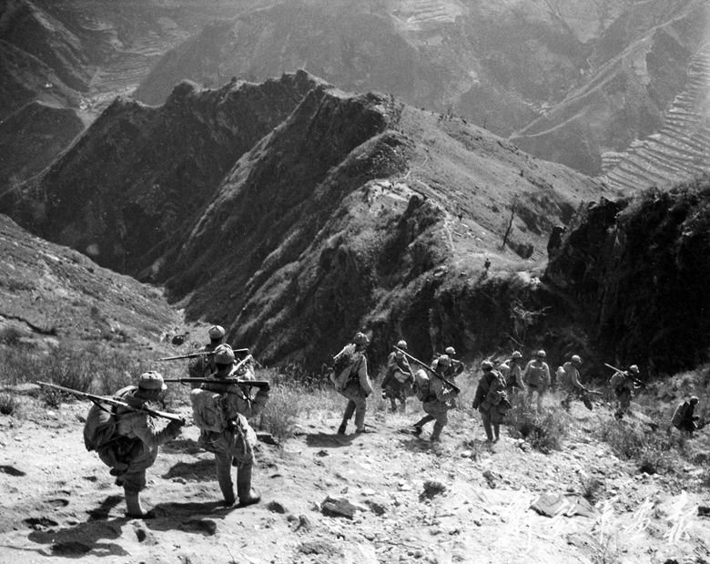 在平西地區(qū)作戰(zhàn)行軍的八路軍戰(zhàn)士。