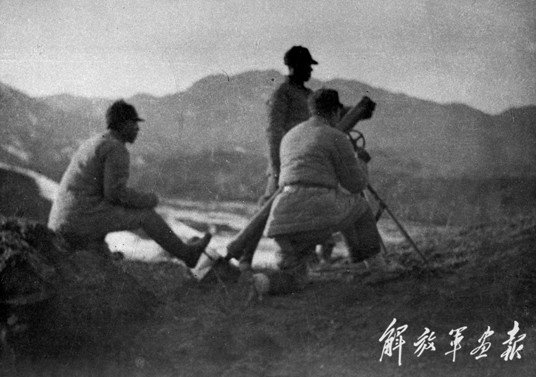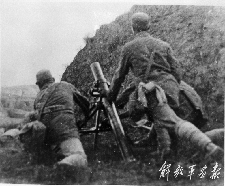 武漢保衛(wèi)戰(zhàn)中,國(guó)民黨軍對(duì)敵發(fā)射迫擊炮。