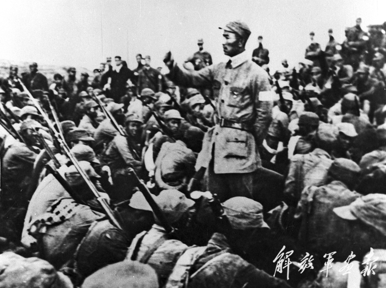 1938年春,浮屠峪戰(zhàn)斗結(jié)束后,八路軍戰(zhàn)士在長(zhǎng)城上召開戰(zhàn)斗總結(jié)會(huì)。