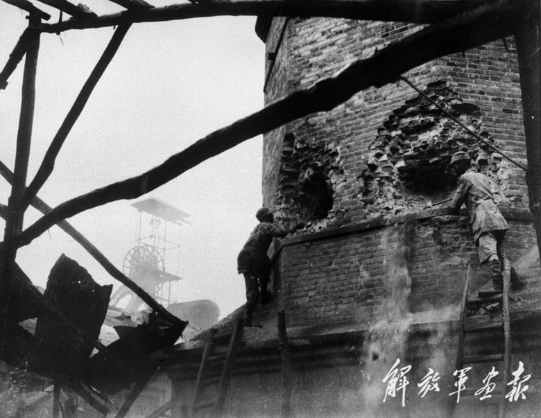 八路軍戰(zhàn)士爆破井陘煤礦大煙囪。