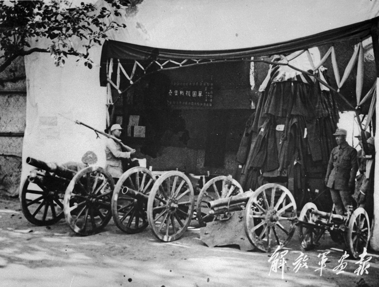 八路軍官兵使用從平型關(guān)戰(zhàn)斗中繳獲的山炮攻打淶源城。