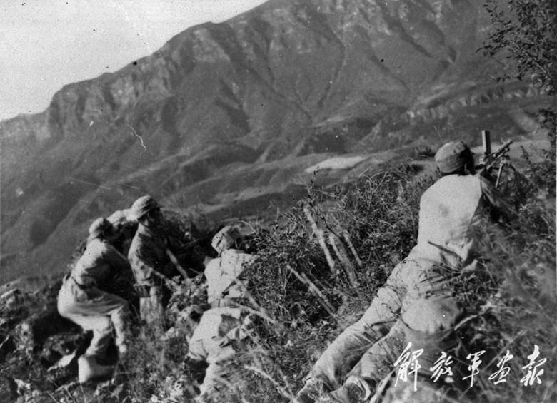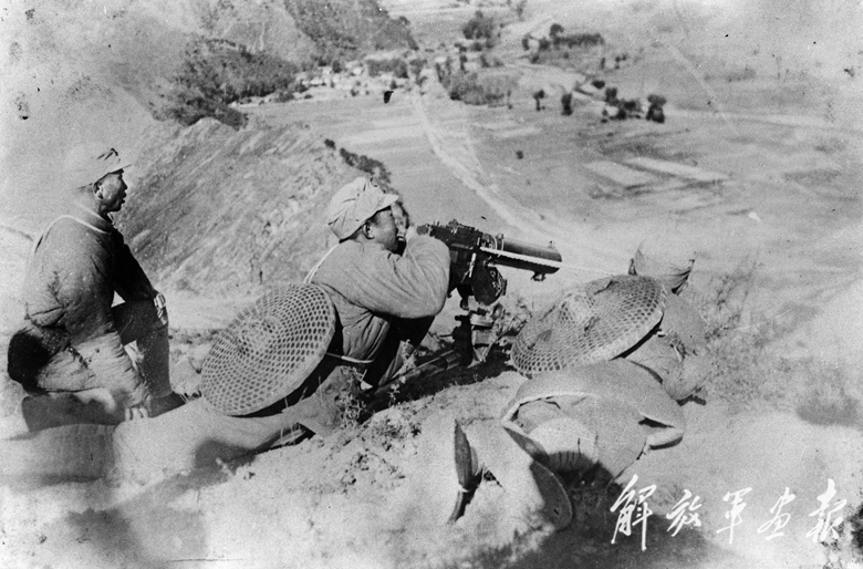 山西陽泉縣獅腦山戰(zhàn)斗中八路軍機(jī)槍陣地。