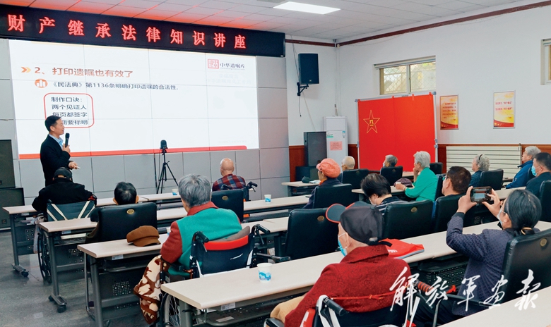 前不久,駐北京市老干部服務(wù)管理局某中心干休所舉行一場(chǎng)普法講座,為老干部講解法律知識(shí),現(xiàn)場(chǎng)解答他們提出的疑難問(wèn)題,受到老干部們的熱烈歡迎。這是該中心深化人文關(guān)懷,做好新時(shí)代老干部工作的一個(gè)縮影。