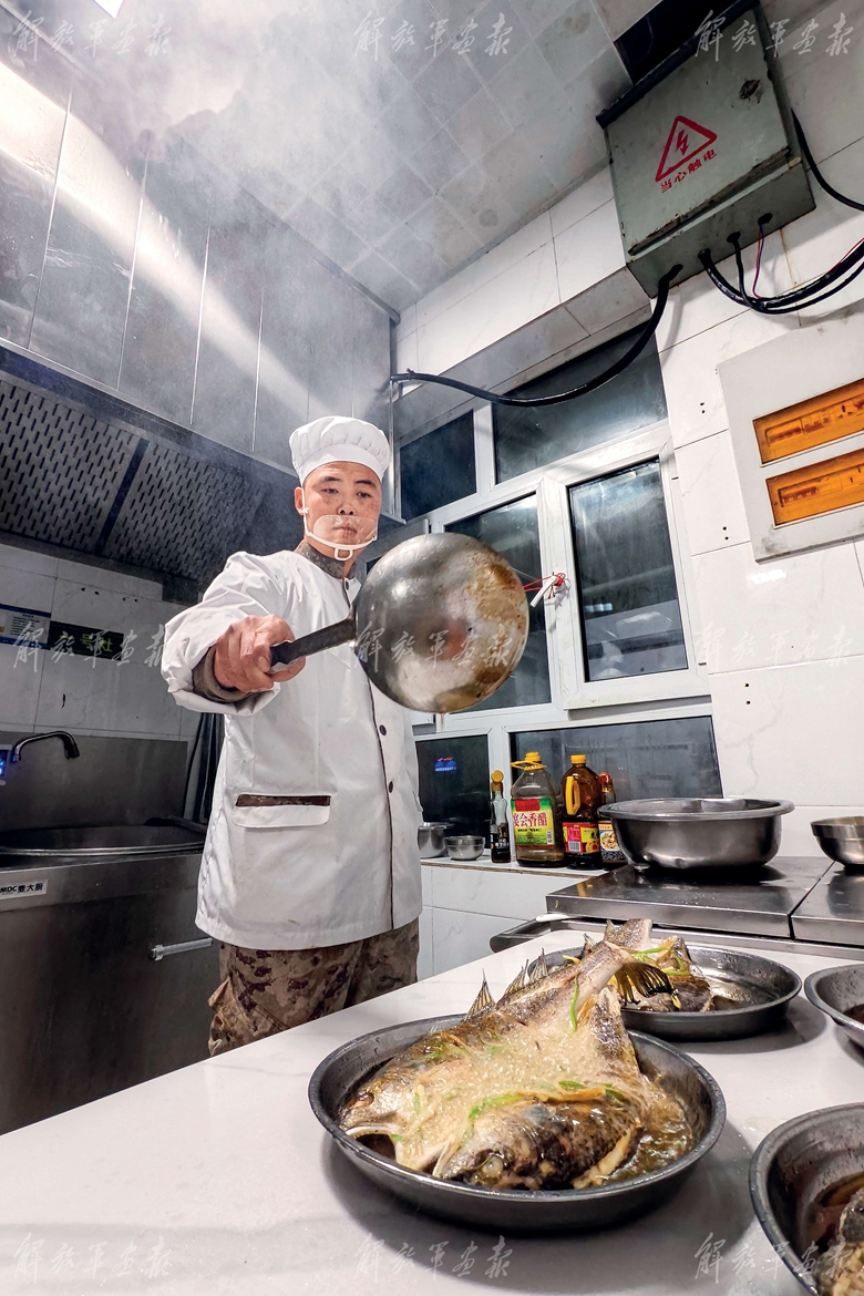 炊事班班長(zhǎng)宋旭為戰(zhàn)友們制作可口菜肴。