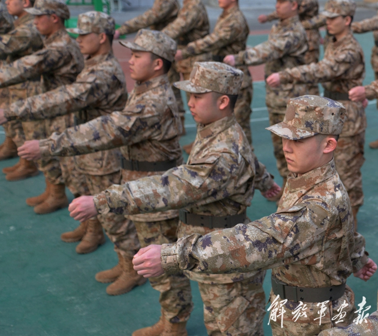 組織預(yù)定新兵開展隊列訓(xùn)練。