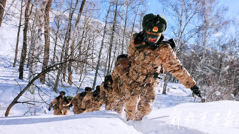 官兵們騎著軍馬,行進在厚厚的積雪中,穿越雪山峽谷。寒風呼嘯,卷起細碎的雪粒,不斷拍打在官兵身上。因為天氣寒冷,軍馬喘息時呼出一團團白氣。