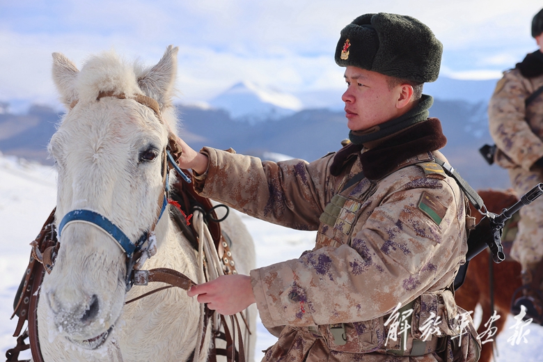巡邏途中,戰(zhàn)士整理軍馬套具。