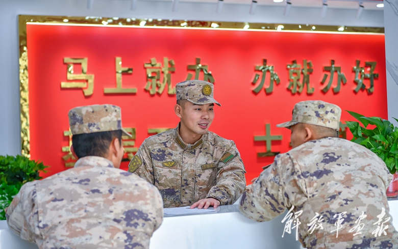 惠兵服務大廳工作人員(中)為官兵提供服務。